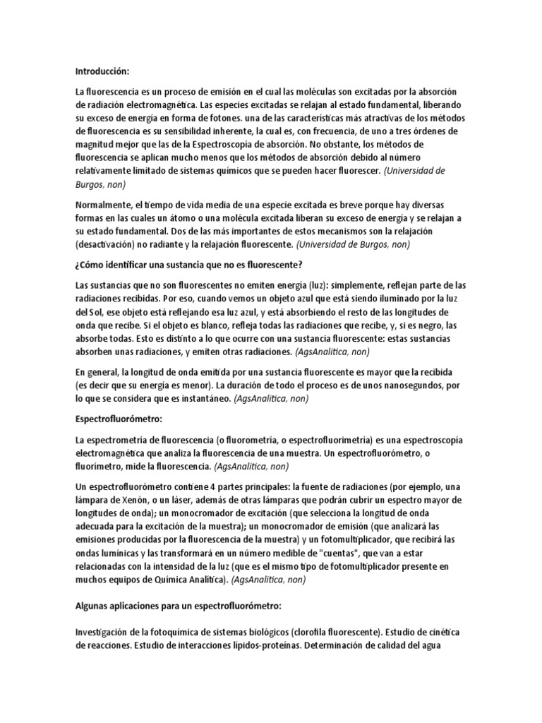 La fluorescencia es un proceso de emisión en el cual las moléculas son excitadas por la absorción