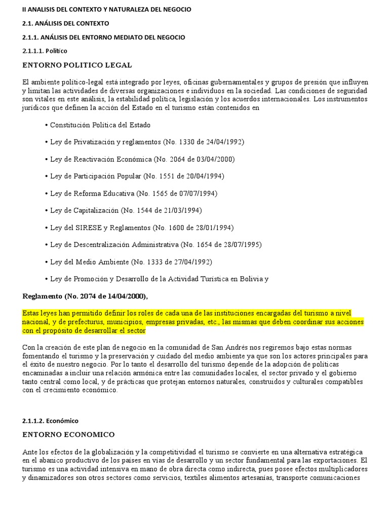 II ANALISIS DEL CONTEXTO Y NATURALEZA DEL NEGOCIO