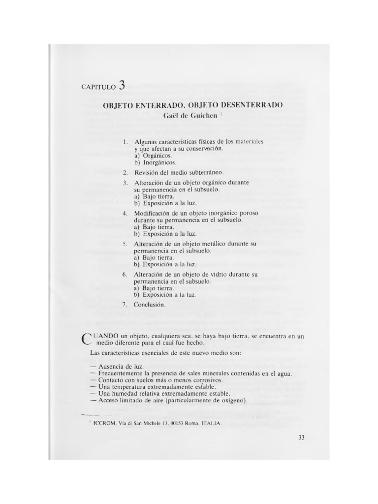 ICCROM, Via di San Michele 13. 01193 Roma, ITALIA.Cuando esti en contacto con su nuevo ambiente, el objeto, sea de material or-