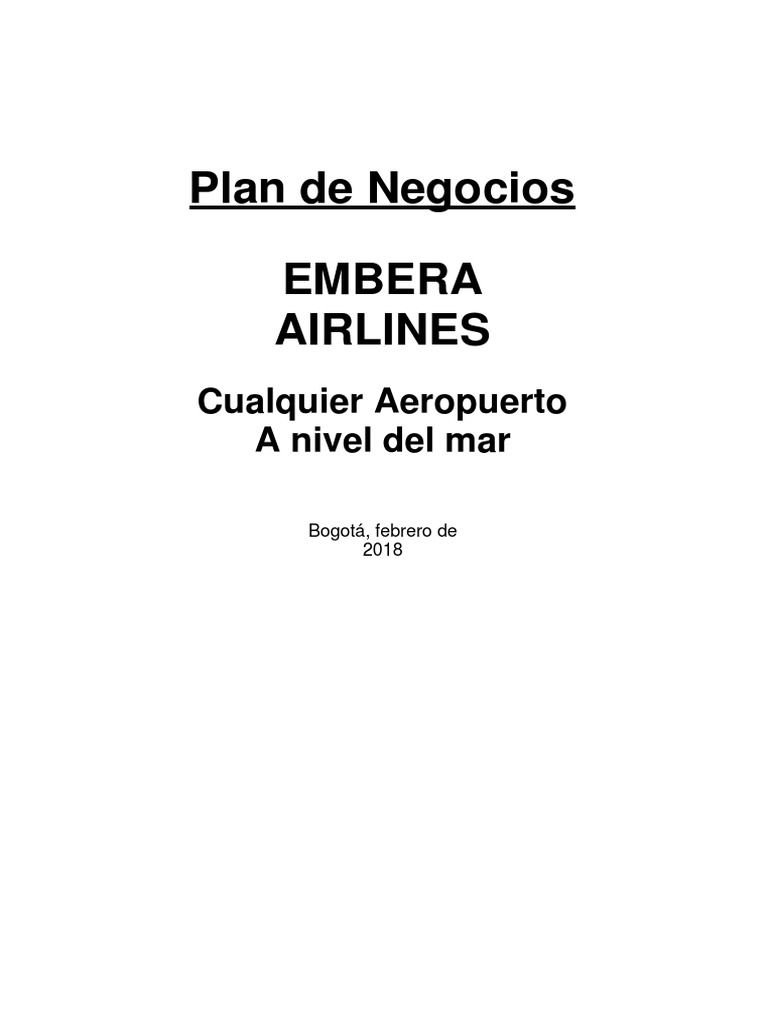 Por tal motivo EMBERA AIRLINES se proyecta como una Empresa Aérea