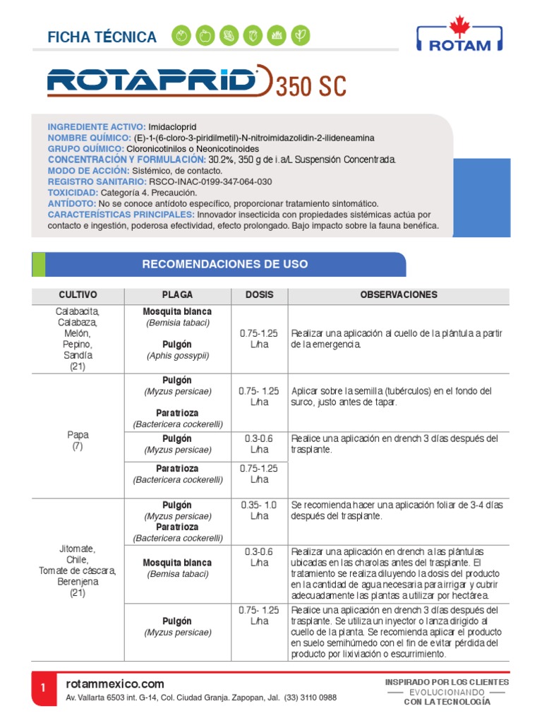 CARACTERÍSTICAS PRINCIPALES: Innovador insecticida con propiedades sistémicas actúa por