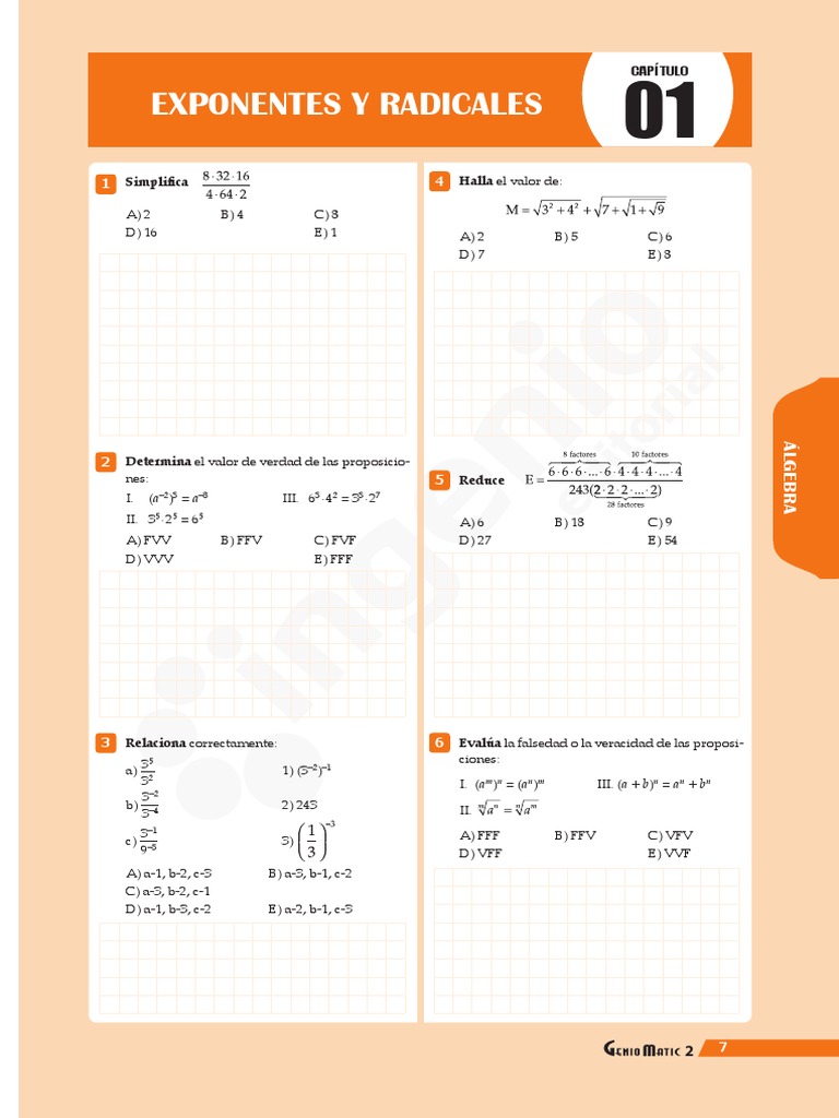 2 Desarrolla el binomio (2x + 3)3 e indica el coefi- 5 Reduce .