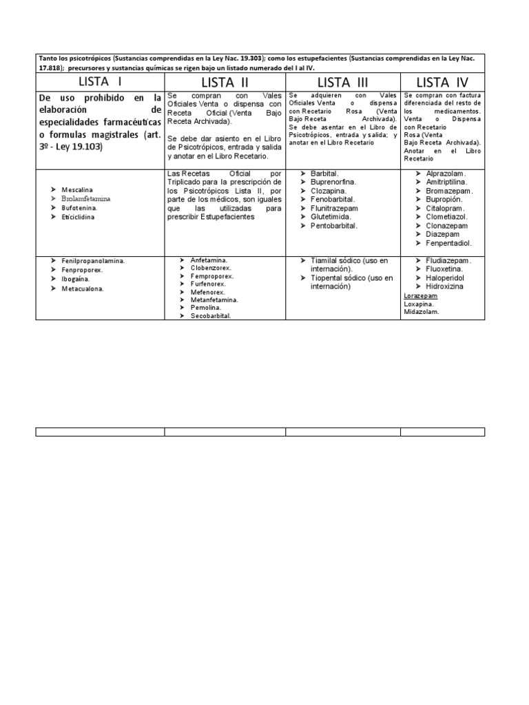 psicotrópicos (Sustancias comprendidas en la Ley Nac. 19.303); como los estupefacientes (Sustancias comprendidas en la Ley Nac.