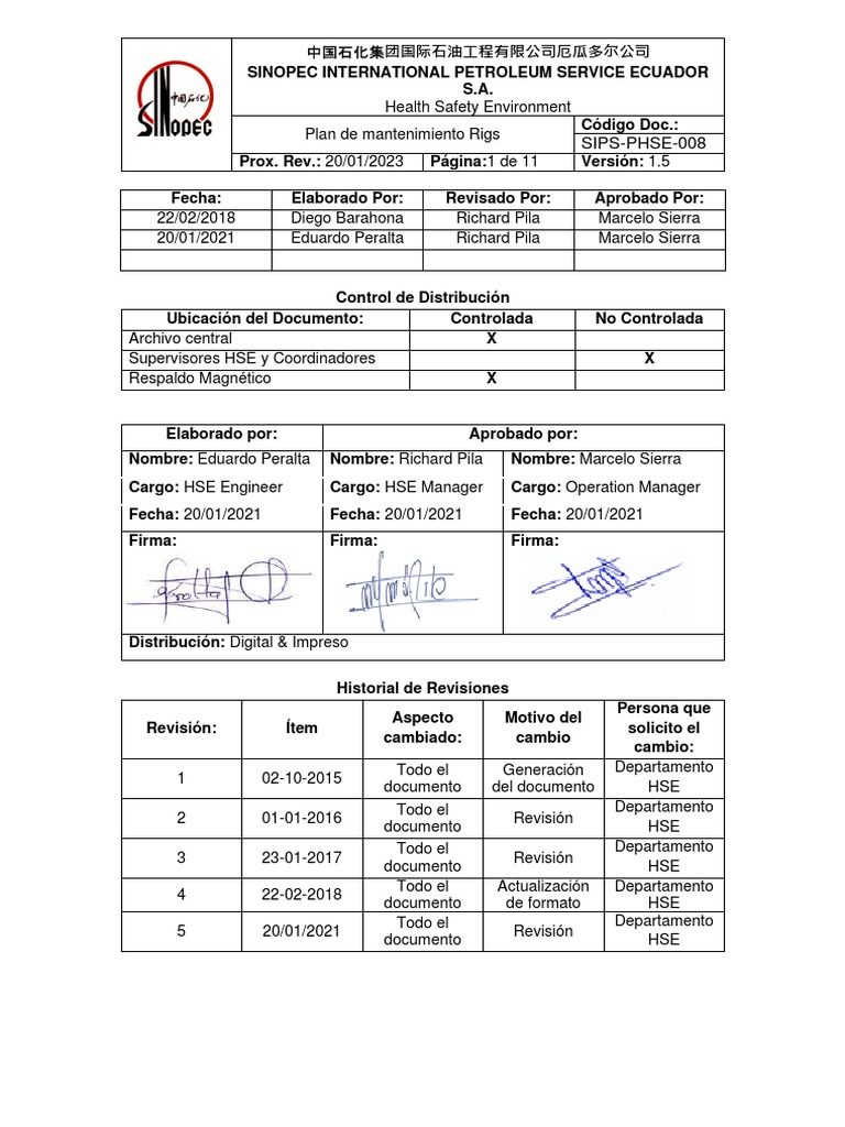 Plan de mantenimiento Rigs