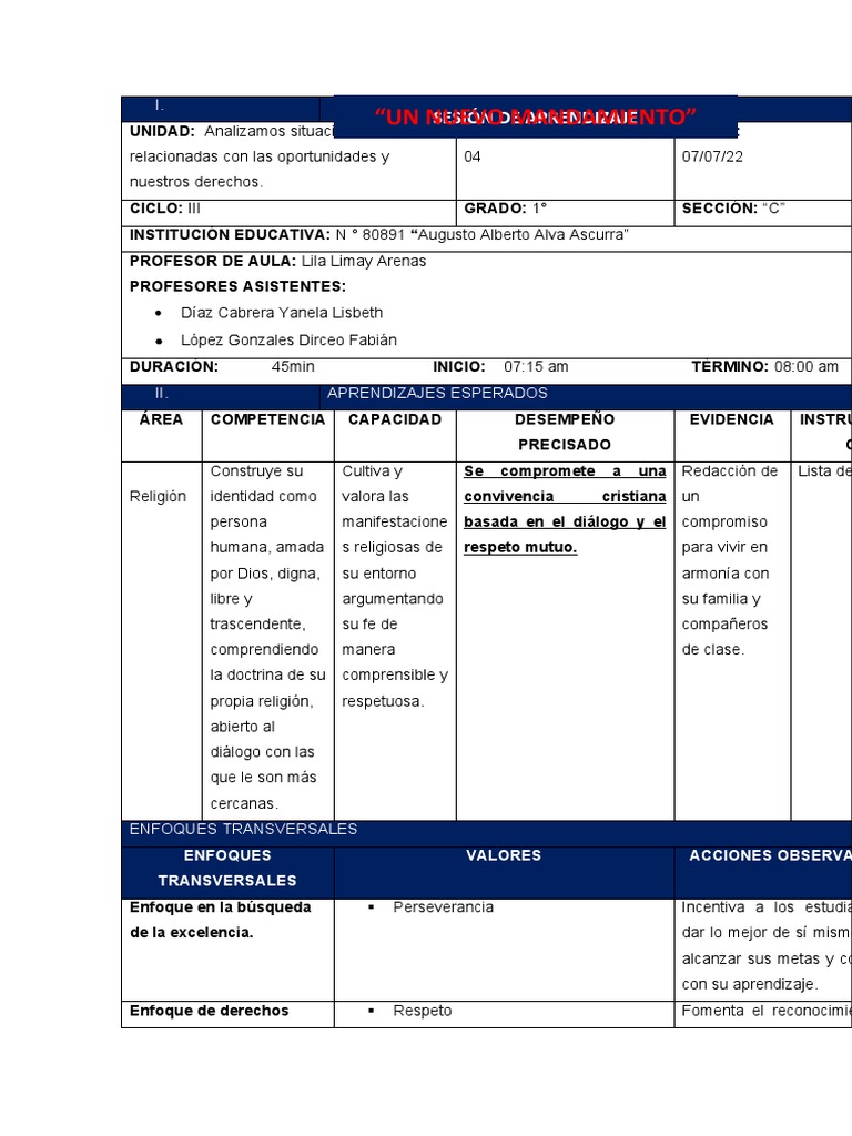 III. PREPARACIÓN DE LA SESIÓN DE APRENDIZAJE
