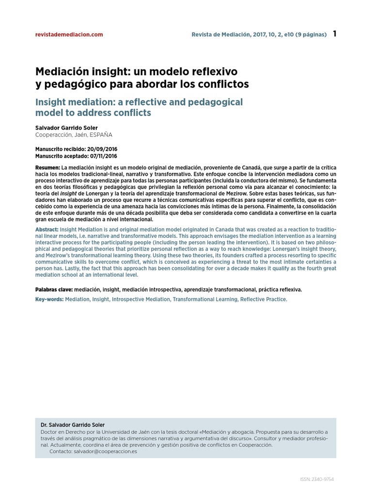 liza imprime su sello personal (De Diego y Guillén, 2010, p. La mediación insight es un modelo de mediación en conflic-