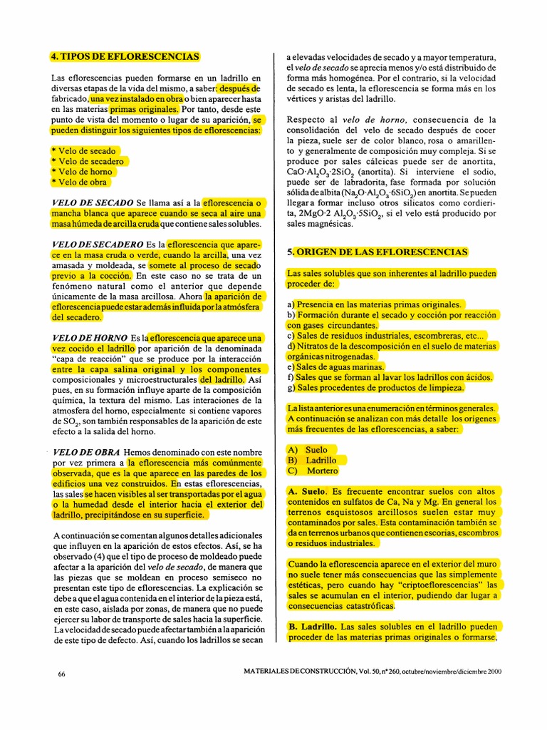 eflorescencia puede estar además influida por la atmósfera a) Presencia en las materias primas originales.