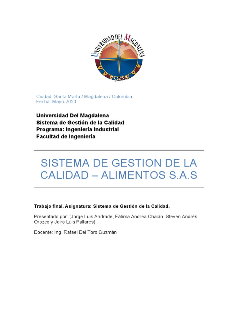 Trabajo final, Asignatura: Sistema de Gestión de la Calidad.