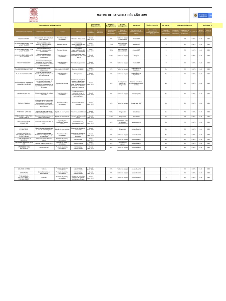MATRIZ DE CAPACITACIÓN AÑO 2019