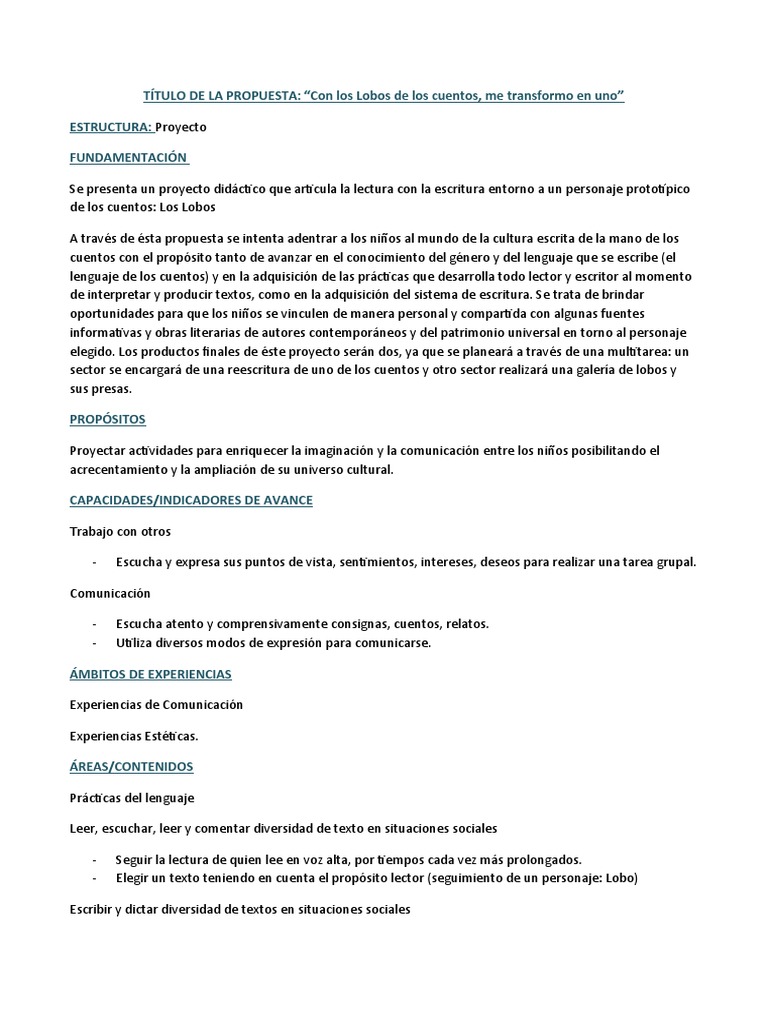 TÍTULO DE LA PROPUESTA: “Con los Lobos de los cuentos, me transformo en uno”