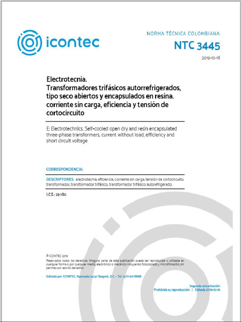 NTC 3445:2008, Electrotecnia. Transformadores trifésicos autorrefrigerados, tipo seco abiertos y