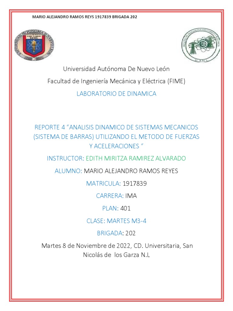 REPORTE 4 “ANALISIS DINAMICO DE SISTEMAS MECANICOS