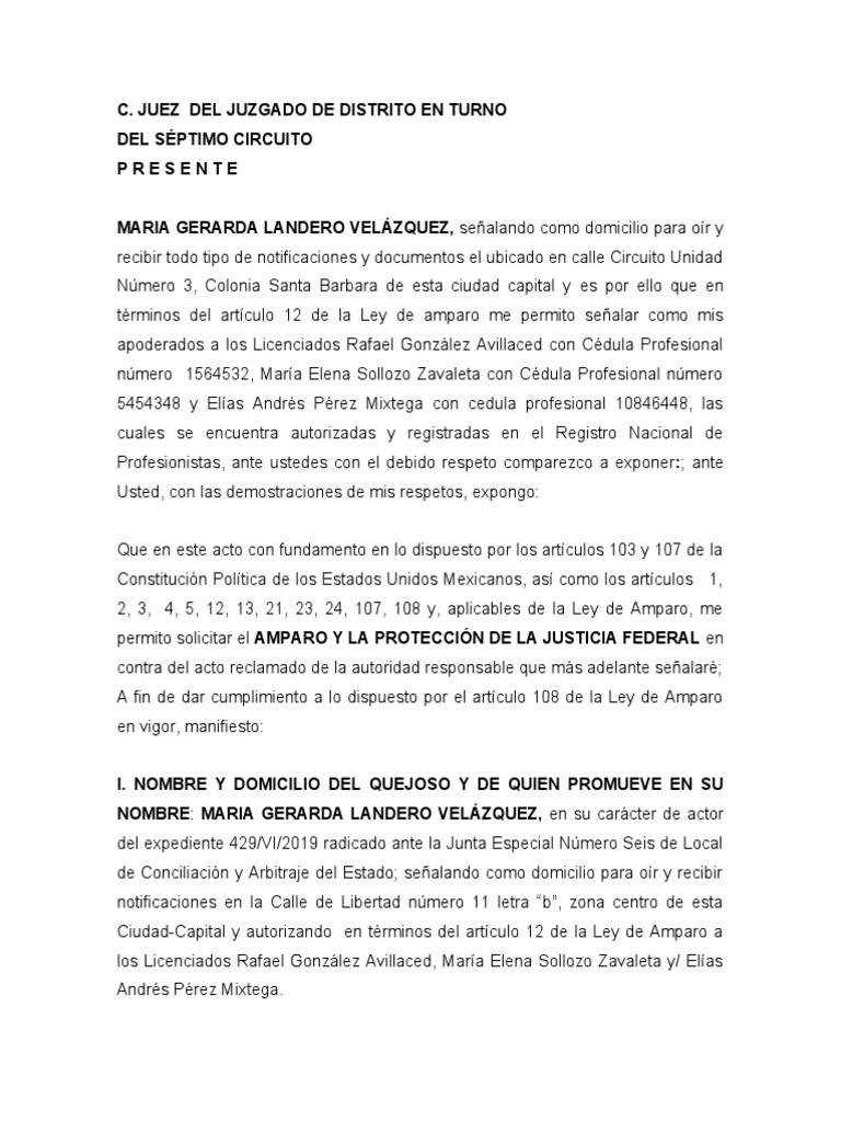 demanda interpuesta por la C. María Gerarda Landero Velázquez en contra