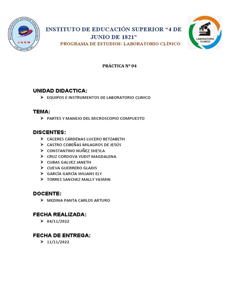 PARTES Y MANEJO MICROSCOPIO COMPUESTO