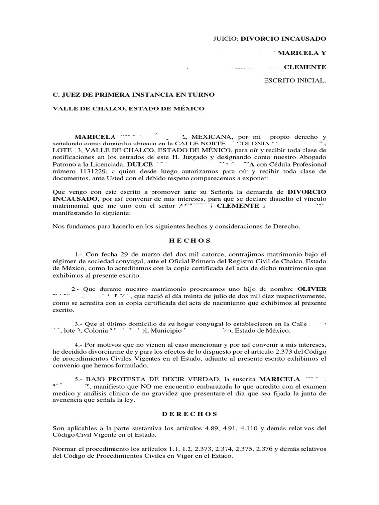 Que vengo con este escrito a promover ante su Señoría la demanda de DIVORCIO