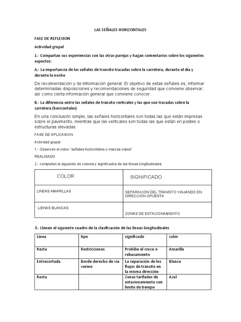 1.- Observen el video “señales horizontales o marcas viales”