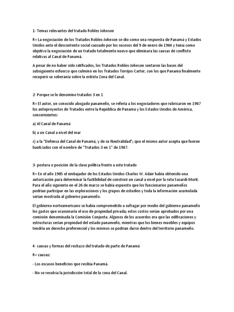 R= La negociación de los Tratados Robles-Johnson se dio como una respuesta de Panamá y Estados