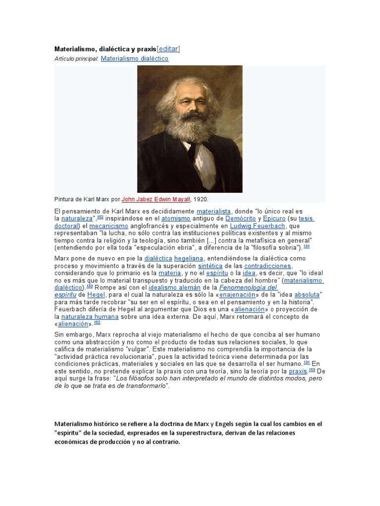 histórico. El materialismo es la base de su pensamiento sociológico porque, para Marx, las
