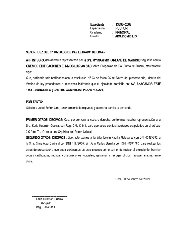 SEñOR JUEZ DEL 6° JUZGADO DE PAZ LETRADO DE LIMA.-