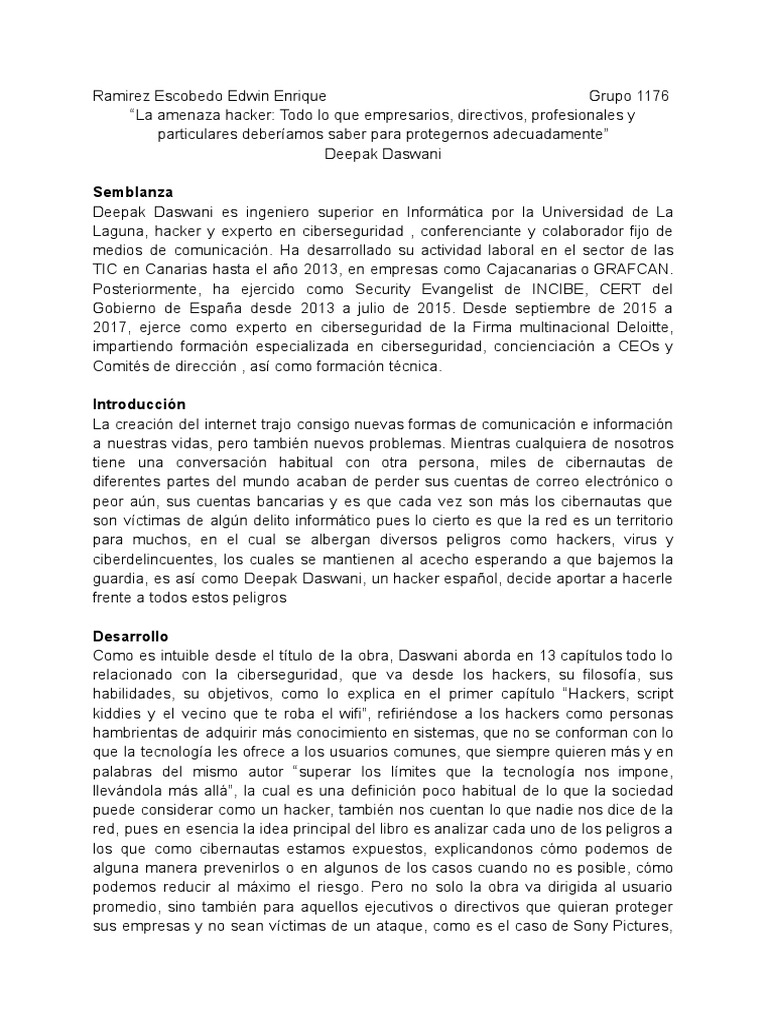 relacionado con la ciberseguridad, que va desde los hackers, su filosofía, sus