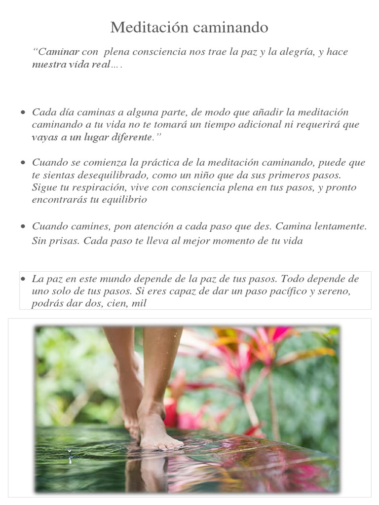 Cuando camines, pon atención a cada paso que des. Camina lentamente.