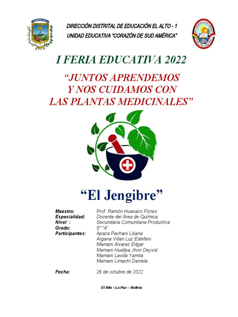 medicinal del jengibre a toda la comunidad educativa.