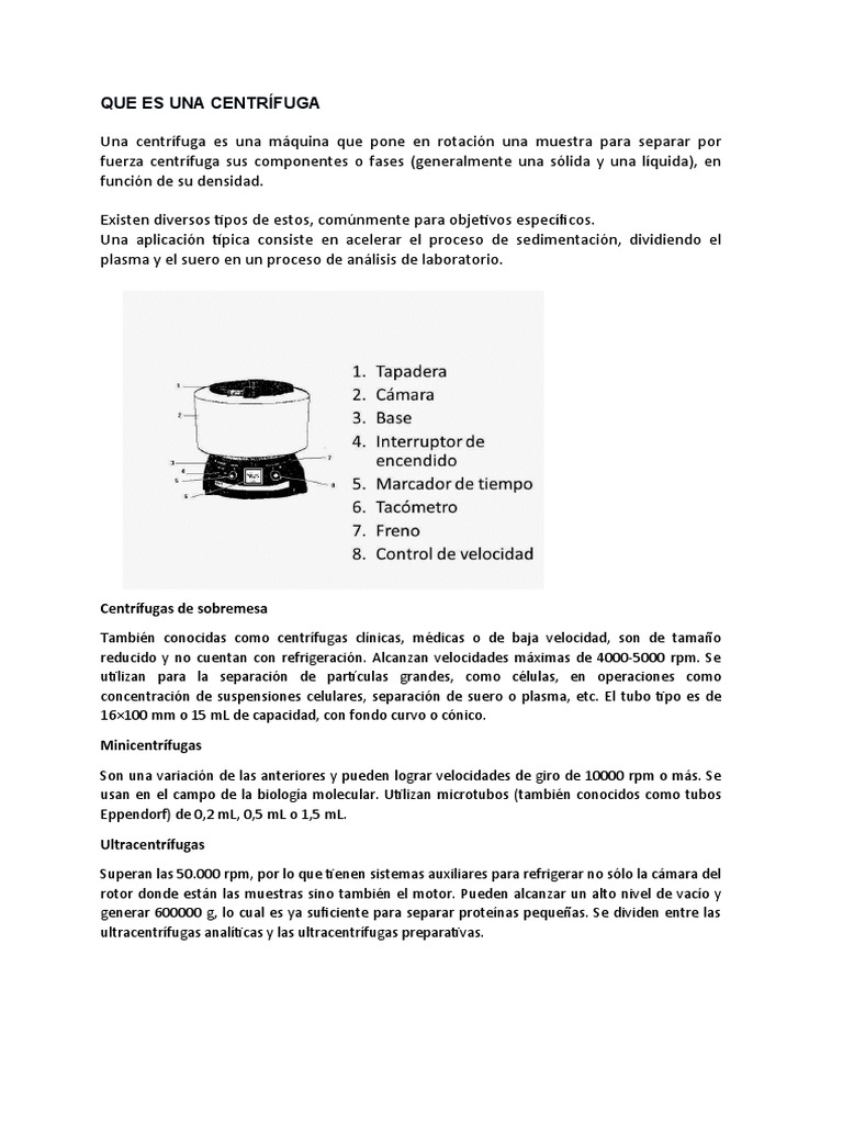 concentración de suspensiones celulares, separación de suero o plasma, etc. El tubo tipo es de