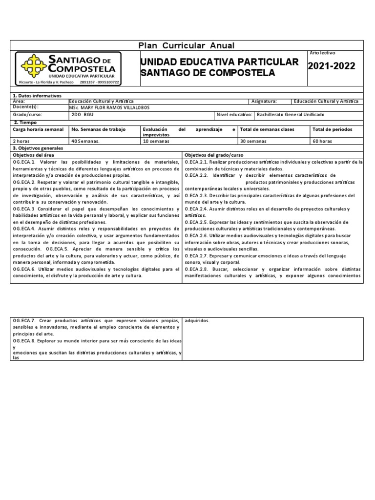 Grado/curso: 2DO BGU Nivel educativo: Bachillerato General Unificado