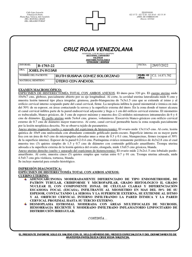 CONTINUACIÓN DE LA BIOPSIA N°: 1703-22