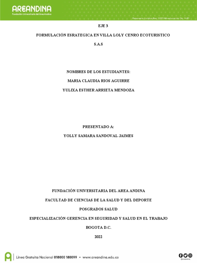 FORMULACIÓN ESRATEGICA EN VILLA LOLY CENRO ECOTURISTICO