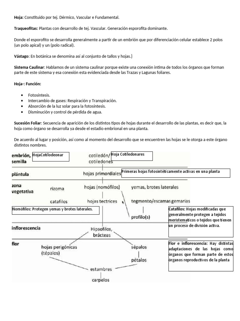 hoja como órgano se desarrolla ya desde el estadio embrional en una planta.