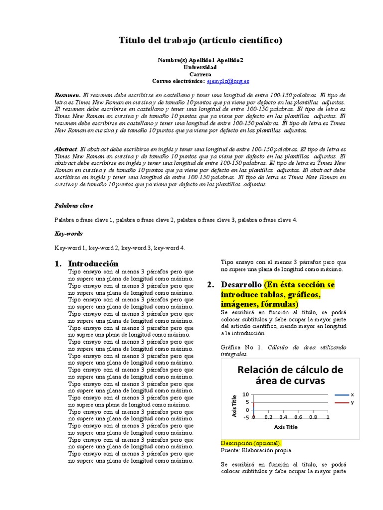 podrá colocar subtítulos y debe ocupar la mayor la mayor parte del artículo científico, siendo