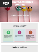 ANEXO 3. TECNICAS Y ESTRATEGIAS DE INTERVENCIN Los procedimientos y tcnicas de intervencin en problemas de conducta son muchas y variadas. La utilizacin de cada una de ellas depender de las caractersticas y reacciones de cada sujeto, adaptndose a las necesidades y situaciones del contexto. Para seleccionar las tcnicas de intervencin hay que tener presentes todos los datos obtenidos en la evaluacin, as como la naturaleza de la conducta problema y las variables que la tienen bajo control. TCNICAS PARA FOMENTAR Y MANTENER CONDUCTAS ADECUADAS La lectura de estos cuadros no debe ser lineal sino que debe implicar una visin conjunta de la intervencin en donde no hay una tcnica especial para cada problema o situacin especifica, sino que lo adecuado seria la utilizacin de varias tcnicas de manera que se garantice la mayor eficacia.