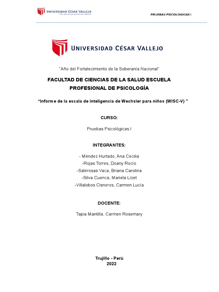 “Informe de la escala de inteligencia de Wechsler para niños (WISC-V) ”