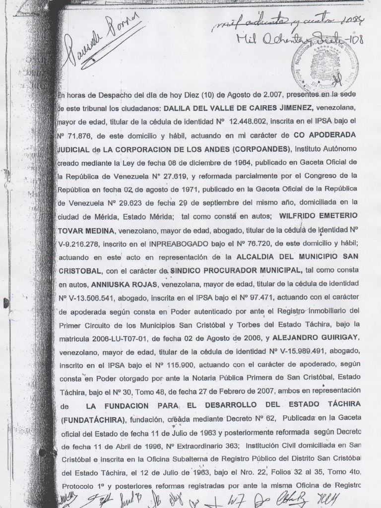 del Estado Tachira, el 12 de Jullo de’1963, bajo el Nro. 22, Folios 32 al 35, Tomo 4to,