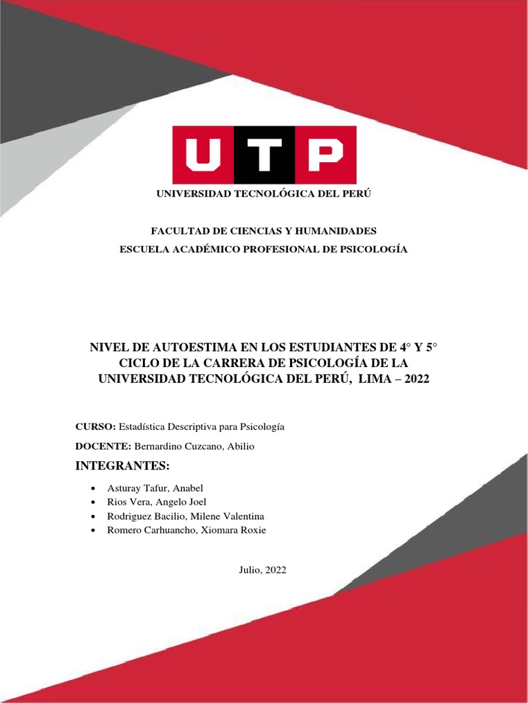 Autoestima en Estudiantes de Psicología UTP