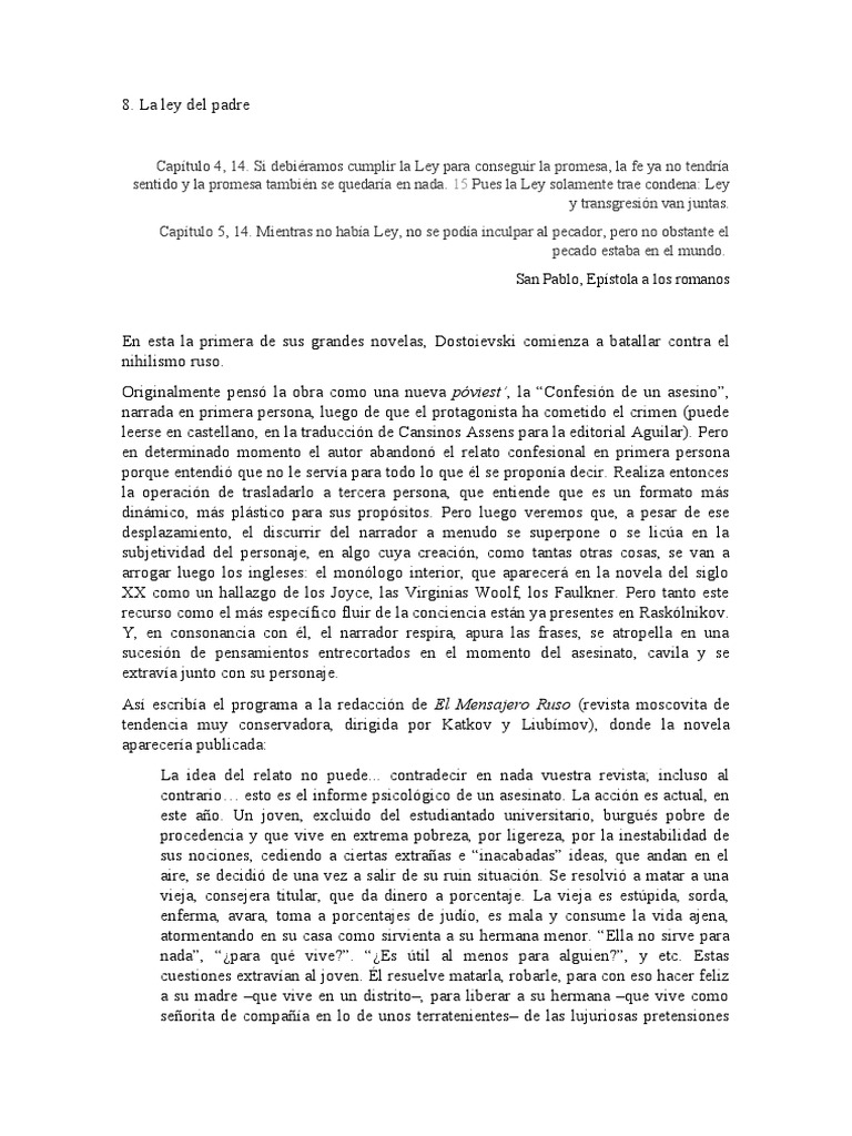 recurso como el más específico fluir de la conciencia están ya presentes en Raskólnikov.