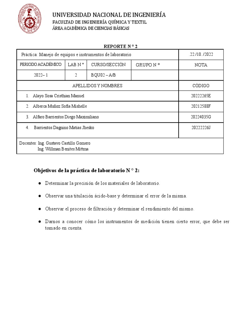 EXPERIENCIA N ° 1 Precisión de instrumentos de medida de volumen