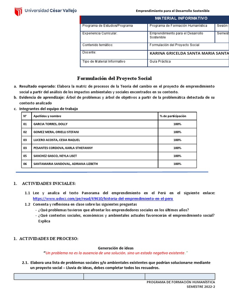 Contenido temático: Formulación del Proyecto Social