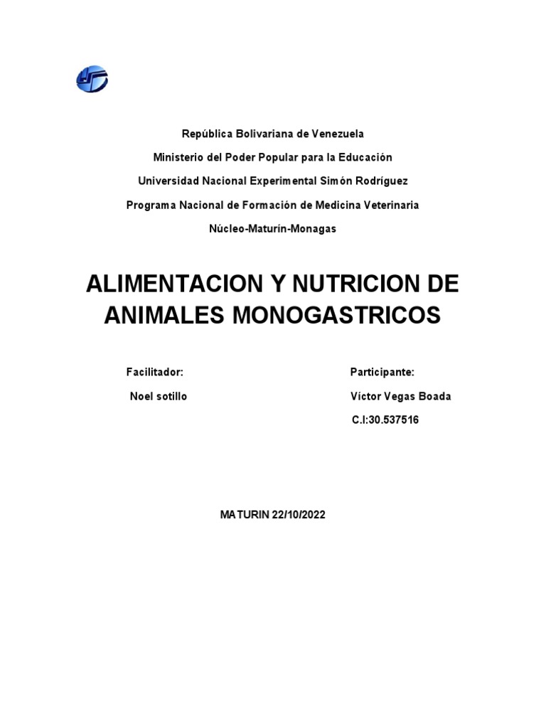 1) COMO SE DEFINE UNA ESPECIE ANIMAL MONOGASTRICO Y CUALES