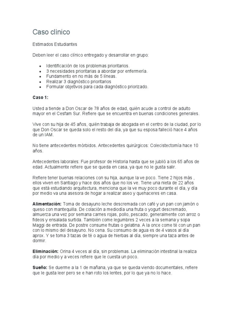 Deben leer el caso clínico entregado y desarrollar en grupo: