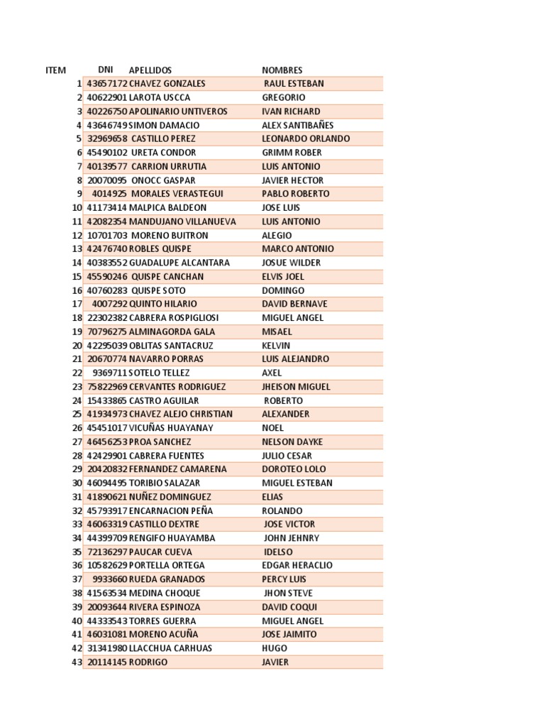 1 43657172 CHAVEZ GONZALES RAUL ESTEBAN