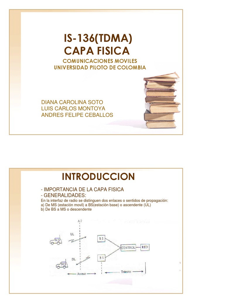 -El estndar IS-136 es la base de la telefona celular TDMA y tecnologa de interfaces areas PCS (Personal Communication System). -La porcin analgica de AMPS fue incorporada en las nuevas especificaciones digitales para proveer una migracin suave y continuar con la filosofa de modo dual (anlogo digital). -El DCCH forma el ncleo de los especificaciones de IS-136, ya que provee una plataforma para caractersticas y servicios avanzados y est diseado para trabajar si problema alguno ya sea en la frecuencia de 800 MHz o 1900 MHz.