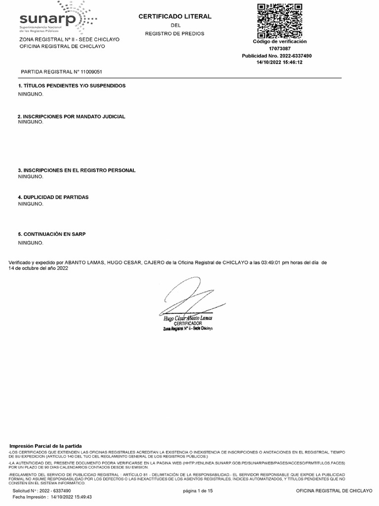 Solicitud N° : 2022 - 6337490 página 15 de 15 OFICINA REGISTRAL DE CHICLAYO