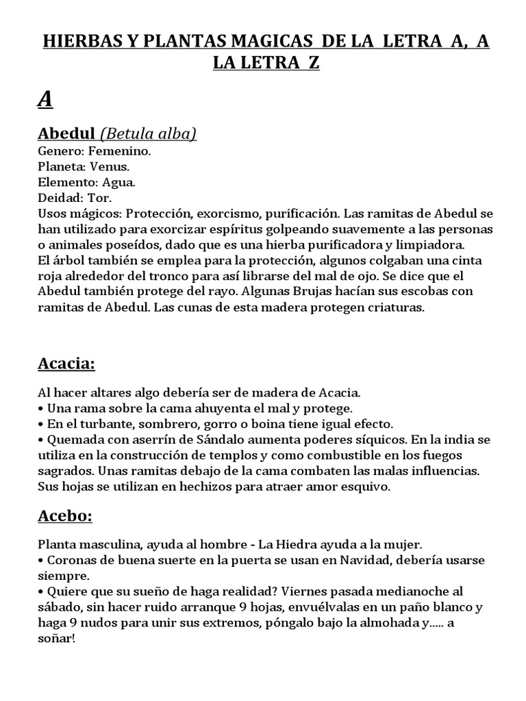HIERBAS Y PLANTAS MAGICAS DE LA LETRA A, A