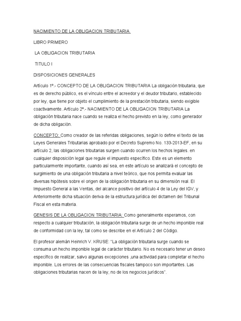 artículo 2, las obligaciones tributarias surgen cuando ocurren los hechos legales. en