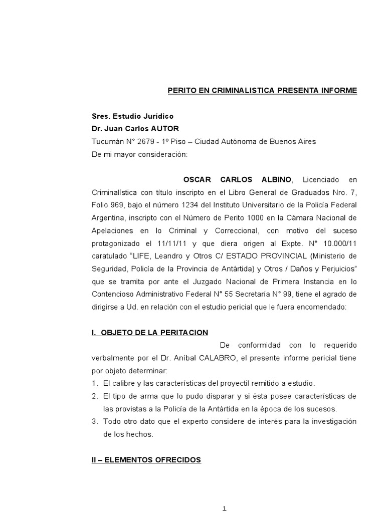 PERITO EN CRIMINALISTICA PRESENTA INFORME