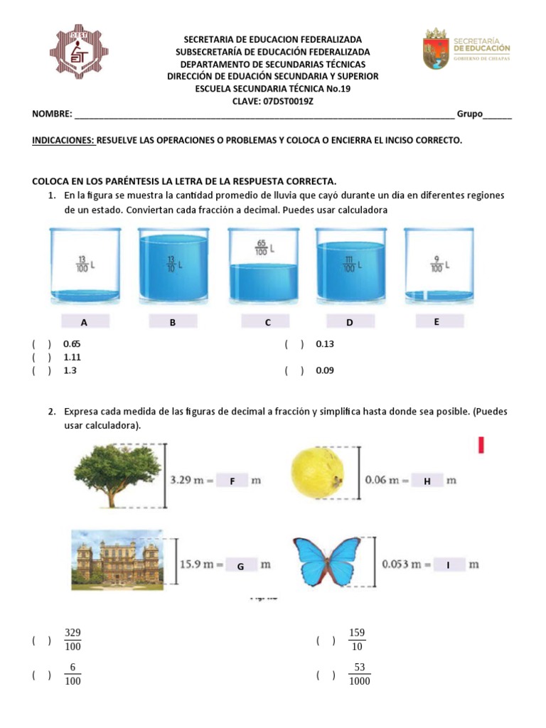 INDICACIONES: RESUELVE LAS OPERACIONES O PROBLEMAS Y COLOCA O ENCIERRA EL INCISO CORRECTO.
