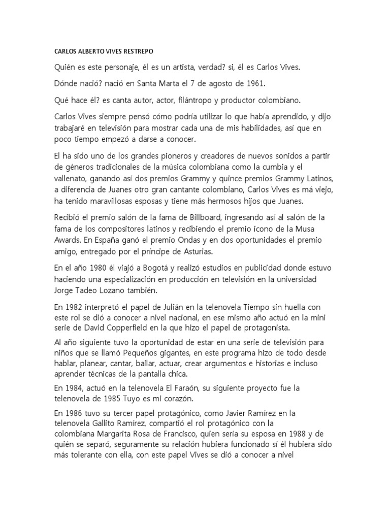 Quién es este personaje, él es un artista, verdad? si, él es Carlos Vives.
