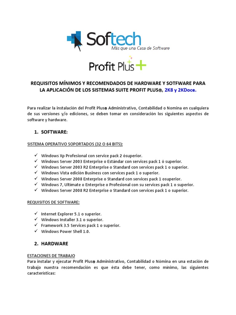 Para instalar y ejecutar Profit Plus Administrativo, Contabilidad o Nómina en una estación de